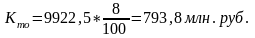 К = 2419,86+9922,5+2285,18+1885,27+793,8+1289,93 = 18596,54 млн. руб.