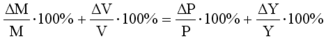 где (deltaМ/М х 100%) – темп прироста денежной массы, обычно обозначаемое m, (deltaV/V x 100%) – темп прироста скорости обращения денег, (deltaP/P x 100%) – темп прироста уровня цен, т.е. темп инфляции pi, (deltaY/Y x 100%) – темп прироста реального ВВП, обозначаемого g.