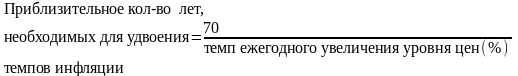 Вычисление "по правилу величины 70". Правило помогает быстро подсчитать количество лет, необходимых для удвоения уровня цен: надо только разделить число 70 на темп ежегодного увеличения уровня цен в процентах.