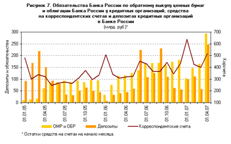 Банк России в январе—марте 2007 г. активно проводил операции по абсорбированию свободных денежных средств кредитных организаций в целях ограничения темпов роста денежного предложения и снижения инфляции.