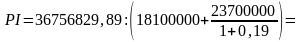 Оскільки розрахункові значення чистих річних поворотних грошових потоків в усі роки однакові, сучасне значення кумулятивного (сумарного за всі роки експлуатаційної фази проекту) зворотного грошового потоку можна визначити за допомогою сучасного стандартного значення ануїтету по формулі