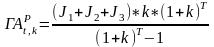де ГАPТ, k – сучасне значення щорічного чистого доходу (еквівалентного ануїтету), що відшкодовує інвестовані кредитні ресурси