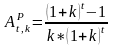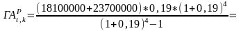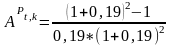 де АPt, k – стандартне сучасне (поточне) значення ануїтету 1 грошової одиниці (ануїтет-фактор) за t років при ставці дисконтування k, рівної вартості кредитних ресурсів у частках одиниці.