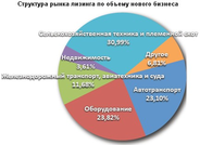 Кризис оказал значительное влияние на структуру рынка лизинга. На первый план вышли те сегменты, где работают лизинговые компании, которые, так или иначе, поддерживаются государством. Самым крупным сегментом по объему сделок стал сегмент сельскохозяйственной техники и племенного скота. Данный сегмент невозможно рассматривать в отрыве от компании «Росагролизинг», на чью долю приходится примерно 99% от общего объема и количества сделок, которая является одним из главных инструментов государства по поддержке агропромышленного комплекса России.13