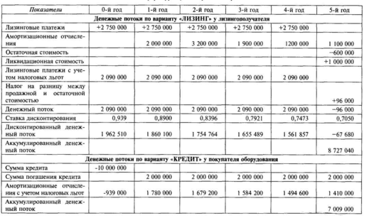 4. Сравнительная эффективность лизинга и банковского кредита
