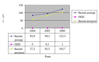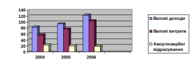 На базовому підприємстві за період 2004 -2006 роки валові доходи в 2004 р. – 82,8 тис. грн., у 2005 р. – 94,2 тис. грн., в 2006 – 123,3 тис. грн..(Додатки З, К, Л ). Валові витрати за 2004 р. - 57,2, за 2005 р. - 77,3, за 2006 р. - 103,7 тис.грн. Амортизаційні відрахування в 2004 р. – 23,3, в 2005 р. – 20,6, 2006 р. - 18,4 тис. грн..