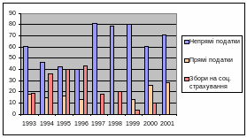 Динаміка обсягу і структури податкових надходжень за 1993-2001 роки.