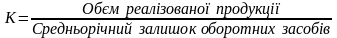 Цей показник характеризує кількість оборотів оборотних коштів за період, що аналізується. Що більше оборотів здійснюють оборотні кошти, то ліпше вони використовуються.