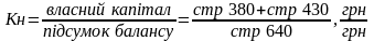 Коефіцієнт незалежності характеризує частку власного капіталу в структурі всього капіталу підприємства і таким чином визначає співвідношення інтересів власників підприємства й кредиторів. Розраховується за формулою