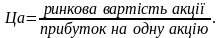Цей коефіцієнт показує, скільки грошових одиниць згодні заплатити за одну грошову одиницю чистого прибутку підприємства.