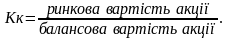 Коефіцієнт котирування характеризується співвідношенням ринкової і балансової вартості однієї акції. Зростання цього коефіцієнта характеризує збільшення ринкової вартості акціонерного товариства.