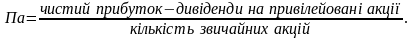 Прибуток на одну акцію показує, яка частка чистого прибутку припадає на одну звичайну акцію. Розраховується за формулою