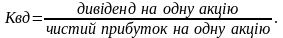 Коефіцієнт виплати дивідендів показує, яка частина чистого прибутку спрямовується на виплату дивідендів. Розраховується за формулою