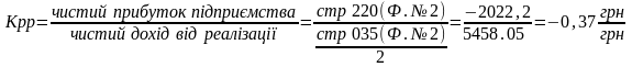 Коефіцієнт рентабельності реалізованої продукції показує, скільки прибутку одержує підприємство з кожної гривні реалізованої продукції. В літературі цей показник відомий як комерційна маржа. Розраховується за формулою