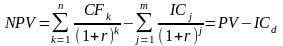 Этот метод основан на сопоставлении величины исходной инвестиции (IC) с суммой дисконтированных чистых денежных поступлений, генерируемых ею в течение прогнозируемого срока.