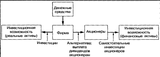 Другие (например, Р. Брэйли, С. Майерс) считают, что ставка дисконтирования представляет собой альтернативные издержки инвестирования в проект, а не на рынке капитала, т.е. вместо осуществления проекта X деньги можно отдать акционерам, которые вложат их в финансовые активы.