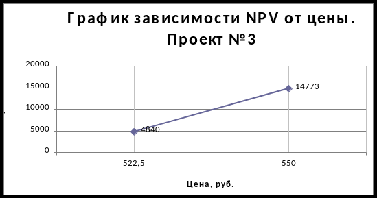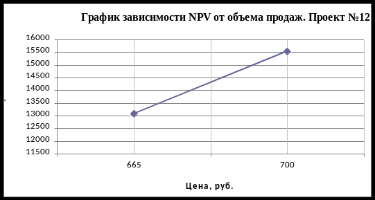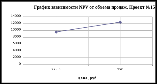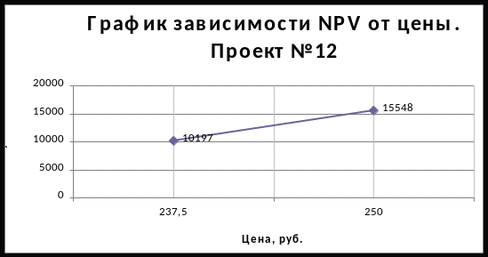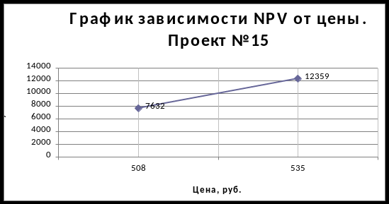 В результате расчетов выяснилось, что NPV чувствителен к изменению цены. При снижении цены на 5% проекты не будут приносить убытки. NPV проектов №3 снизится в 3 раза, №12 в 1,5 раза, №15 в 1,6 раз.