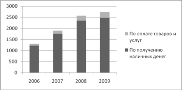 Начиная с 2006 года наметилась позитивная тенденция использования на территории России клиентами кредитных организаций — резидентов банковских карт в целях оплаты товаров (работ, услуг). Удельный вес количества безналичных платежей в общем количестве операций с картами вырос с 19% в 2006 году до 25% в 2009 году, а темпы прироста по количеству платежей ежегодно составляли более 55% (для сравнения: темп прироста по количеству операций по снятию наличных 41%), это говорит о том, что держатели карт стали их чаще использовать при совершении безналичных платежей.