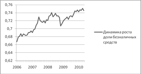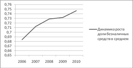 рис. 2. Динамика роста доли безналичных средств в среднем.