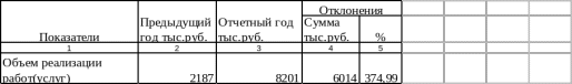 | Показатели | Предыдущий год тыс. руб | Отчетный год тыс. руб. | Отклонение в % | Удельный вес в общем объеме реализации |