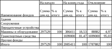 Прогрессивными сдвигами в структуре ОПФ считается увеличение удельного веса и абсолютной величины активной части фондов, к которой относятся машины и оборудование и транспортные средства. По данным таблицы мы видим, что стоимость активной части фондов увеличилась на 1787882 ден. ед., а удельный вес активной части составляет 100 % от общего объема ОПФ данного предприятия. Пассивная часть ОПФ, т. е. здания и сооружения на данном предприятии отсутствуют, так как, здание офиса, склад для хранения материалов и гараж предприятие арендует. В текущем году общество планирует строительство здания под офис. Документы по проектированию здания находятся в стадии проектирования. Земельный участок, на котором будет идти строительство, оформлен в аренду на 49 лет.
