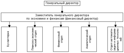 Новым в организационной структуре управления финансово-экономической службы является аналитический отдел — отдел внутренней отчетности, анализа и аудита, поскольку бухгалтерия, планово-экономический и финансовый отделы существовали и раньше со своими устоявшимися и традиционными задачами, а отдел автоматизации и информационных технологий раньше назывался отделом автоматизированных систем управления.