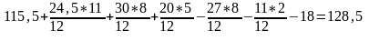 Сумма амортизации собственных ОС = 128,5 * 12 % = 15,4 тыс.руб.
