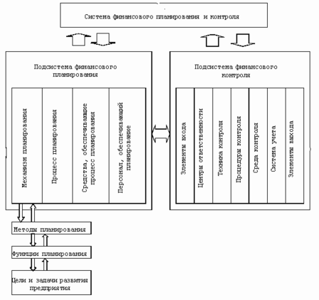 При изучении системы финансового планирования нельзя не отметить ее тесную связь с системой финансового контроля на предприятии. Несмотря на то что планирование и контроль — это две разные функции управления, существование их в хозяйственной деятельности предприятий отдельно друг от друга является невозможным, т.к. они взаимодополняют и обусловливают друг друга. А поэтому оценка достижения целей, поставленных в рамках финансового планирования, была бы невозможна без проведения финансового контроля. Вот почему решая задачу совершенствования системы финансового планирования на предприятии, нельзя не оставить в стороне и систему финансового контроля.