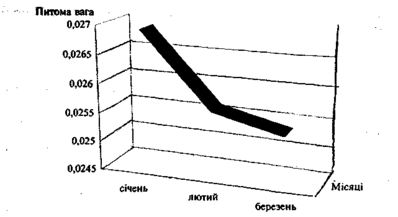 Рис 2.1. Динаміка питомої ваги надходжень від суб’єктів, що здійснювали операції з фондовими цінностями, у загальній сумі зведеного бюджету України в січні-березні 2006-го року.