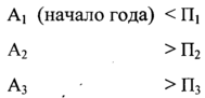 А4 < П4, т.е. на начало года считать баланс полностью ликвидным нельзя, так как наиболее ликвидные активы (А1) меньше наиболее срочных обязательств (П1), а должно быть наоборот.