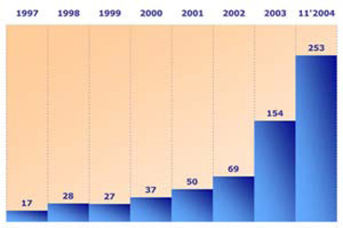 На начало декабря 2004 года количество паевых фондов в России достигло 253. В российские ПИФы на 2 декабря 2004 г. было вложено 108 млрд. рублей (3,84 млрд. долларов).