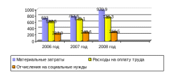 Анализ элементов операционных расходов показал, что в 2008 году материальные затраты увеличились на 278,9 тыс. грн., по сравнению с аналогичным периодом 2006 года. Расходы на оплату труда составили 587,5 тыс. грн. и 736,3 тыс. грн. в 2006 и 2008 годах соответственно, т.е. в 2008 году расходы увеличились на 148,8 тыс. грн.