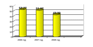 По данным расчетов можно сделать вывод, что в 2006 году большая часть основных фондов была списана на затраты производства и требовала обновления. В 2007 году данный показатель уменьшился на 1,3%, а в 2008 году коэффициент износа составил 43,32%.