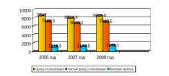 Рис. 2.2 - Структура дохода от реализации, чистого дохода и валовой прибыли на ЧП ПКФ «ВИЛЕНА - ЛАС»