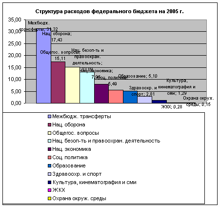 Анализ данных показывает, что среди расходов федерального бюджета все большее место занимают затраты на оказание финансовой помощи другим бюджетам бюджетной системы – 31,32%. На втором месте расходы на национальную оборону – 17,43%. И на третьем месте общегосударственные вопросы.