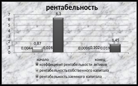 Коэффициент оборачиваемости активов равен 0,72 и на конец 0,004, т.е. на начало периода ресурсы использовались эффективно, но на конец периода эффективность резко упала.