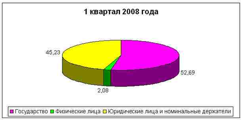 Рис. 3.1 - Структура акционерного капитала ОАО «РАО ЕЭС России» на 31.03.2008