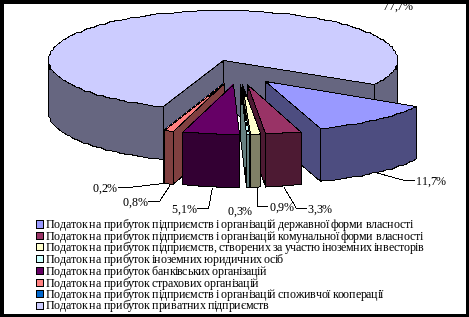 Структура надходжень податку на прибуток до зведеного бюджету Чернівецької області в 2006 році характеризується такими даними (рис. 2.1).