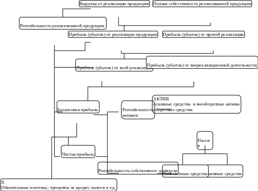 Расчет коэффициентов рентабельности исходя из приведенного выше деления позволяет достаточно полно оценить эффективность деятельности предприятия. Так, рентабельность реализованной продукции показывает какую прибыль приносит предприятию рубль вложенных средств, но она не позволяет оценить эффективность использования предприятием его активов: основных и оборотных средств и его пассивов: собственных и заемных средств. Оценить эффективность использования основных и оборотных средств позволяет расчет коэффициента рентабельности активов, который показывает сколько рублей прибыли приносит рубль всех вложенных в предприятие средств, но этот показатель не может дать ответ на сколько эффективно предприятие использует собственные и привлеченные источники финансирования. По этому для ответа на вопрос эффективно ли предприятие использует свои собственные средства, необходимо ли ей привлекать дополнительные займы и кредиты позволяет расчет коэффициента рентабельности собственных средств. Таким образом, расчет и сопоставление между собой коэффициентов этих трех групп позволит достаточно полно осветить эффективность основной деятельности предприятия, использования активов и пассивов, выявить сложившиеся тенденции, принять решения о необходимых мероприятиях по повышению рентабельности предприятия.
