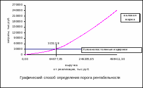 Порог рентабельности это такой объем выручки от реализации при котором прибыль равна нулю, но предприятие полностью покрывает свои постоянные и переменные издержки.