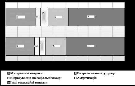 Маючи дані таблиць 13 і 12, можемо зробити порівняльний аналіз операційних витрат по елементах у розрізі прогнозних і фактичних даних ( рисунок 4).