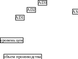 Уменьшение спроса на продукцию вследствие уменьшения объема ее реализации и уменьшения доходов потребителей на кейнсианском участке не приведет к падению цен, а уменьшит объем производства. Уменьшение объема производства может привести к росту себестоимости продукции за счет накладных расходов и других фиксированных компонентов затрат. Это приведет к новому смещению вправо кривой предложения.