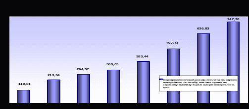 Рис. 2.5 Динаміка середньомісячного розміру виплати на одного потерпілого за 2001-2008 роки