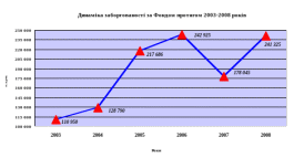 Рис. 2.8 Динаміка заборгованості за фондом протягом 2003-2008 років.