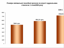 Рис.2.9 Розміри мінімальної пенсійної виплати по втраті годувальника станом на 1 січня 2009 року.