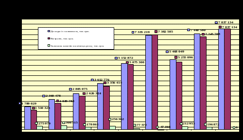 За 8 років діяльності надходження та витрати бюджету Фонду соціального страхування з тимчасової втрати працездатності, характеризуються показниками, зображеними на рис.2.7.