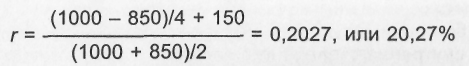 Например, N = 1000 руб., Р = 850, n - 4 года, купон равен 15%.
