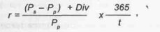 Доходность операции с акцией, если покупка и продажа акции происходят в рамках одного года, можно определить по формуле: