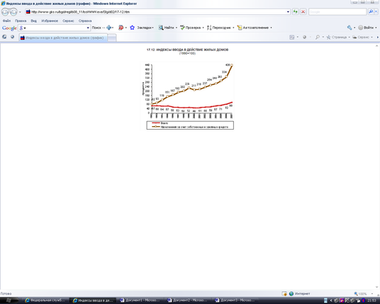 При этом непосредственно за счет средств федерального бюджета в 2008 году было построено всего 63,8 млн.кв.метров общей площади жилых домов, что составило 104,5% к предыдущему году (в 2007г. было введено 61,0 млн.кв.метров, 120,6% к 2006г.).