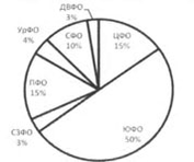 Рис. 2. Структура единого сельскохозяйственного налога, начисленного в федеральных округах Российской Федерации в 2007 г.